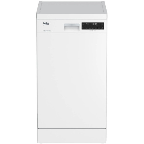 Посудомоечная машина 45см BEKO DFS28120W белый (3-я корз., диспл). Посудомоечная машина с высокоэффективным инверторным двигателем и превосходно низким уровнем шума и внутренней подсветкой для удобства использования. Удобный и понятный LCD-дисплей и функция блокировки кнопок. Увеличенная вместимость благодаря третьей корзине и оптимизированный процесс очистки посуды с технологией AquaFlex.