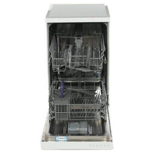 Посудомоечная машина имеет ширину 45 см, удобный LCD-дисплей и блокировку кнопок от случайного нажатия. Посудомоечная машина вмещает до 10 полных комплектов посуды и предлагает 5 программ мытья, технологию бережного мытья стеклянной посуды и режим самоочистки. Система защиты от протечек обеспечивает безопасность во время каждого использования посудомоечной машины.
