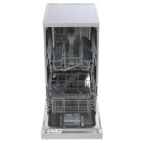 Элегантная посудомоечная машина серебристого цвета имеет класс энергоэффективности А, экономично расходует воду – до 10,5 л при каждом полном цикле – и работает с низким уровнем шума. При ширине всего 45 см посудомоечная машина вмещает до 10 полных комплектов посуды и предлагает 5 программ мытья, функцию отложенного старта на 3, 6 и 9 часов и возможность работы при половинной загрузке. Системы защиты от протечек и смягчения воды обеспечивают безопасную и долговечную работу посудомоечной машины.