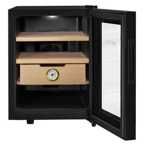 Если вы любитель сигар, то хорошо знаете, как важно хранить сигары в оптимальных условиях влажности. Хьюмидор Meyvel MC-33BT отлично подойдёт для этой задачи. Компактный размеры делают возможной установку, практически в любом желаемом Вами месте. При небольших размера объём составляет 33 литра и позволяет хранить большую коллекцию сигар. В комплекте идут 2 полки и выдвижной ящик, которые можно располагать на разных уровнях. Полки и ящик изготовлены из дерева испанского кедра - отлично подходят для поддержания оптимального уровня влажности и не портятся во время эксплуатации. Дверца с двойным стеклом имеет защиту от УФ лучей и не пропускает излишнего излучения. В ящике хьюмидора Meyvel MC-33BT встроен гигрометр, с помощью которого удобно отслеживать уровень влажности. Панель управления с электронным дисплеем позволит настроить необходимую температуру в диапазоне от +10C° до +18C°, включить или отключить внутреннее освещение. Уровень шума не превышает 25дБ, работа хьюмидора остаётся практически бесшумной. Отличительные особенности: * Температурный диапазон от +10С° до +19С°; * внутренняя подсветка; * выдвижной ящик; * гигрометр; * уровень шума 25 дБ; * электронная панель управления; * выдвижной ящик;