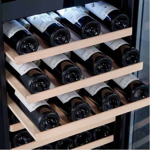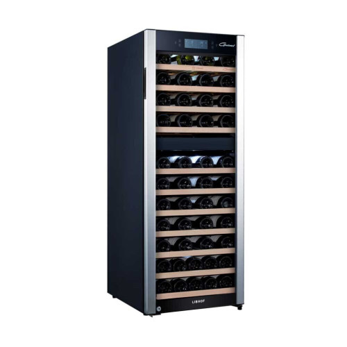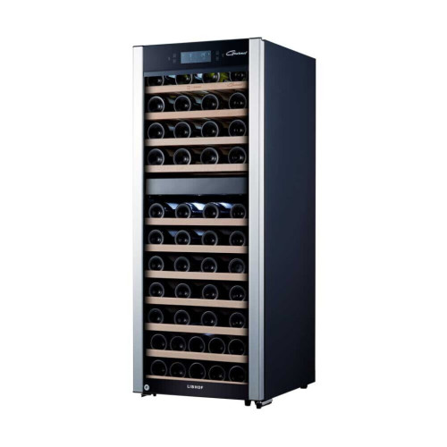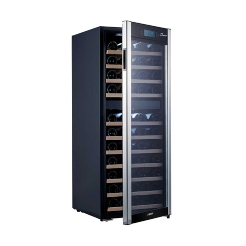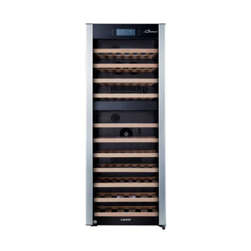 Двухзонный шкаф премиум класса GPD-73 может использоваться для охлаждения вина перед подачей, длительного хранения или созревания винной коллекции. Модель рассчитана на размещение в ней до 73 бутылок вина стандартного объема 0, 75 л. Современный компрессор обеспечивает низкий уровень вибраций. На полках из твердых пород дерева не образуется конденсат, что позволяет сохранить этикетки бутылок в первоначальном виде. Современное светодиодное освещение не является источником тепла и сохраняет электроэнергию. На двери установлен тонированный стеклопакет, препятствующий проникновению света и сохраняющий свойства благородного алкоголя. Сменный угольный фильтр служит для устранения посторонних запахов, проникающих внутрь холодильника через систему естественной вентиляции. Для предотвращения высыхания пробки в шкафу сохраняется влажность более 50%. Это позволяет бутылкам с вином храниться в течение долгих лет. Благодаря «зимнему» режиму прибор можно устанавливать даже в помещениях с низкой температурой. В таких случаях у винного шкафа включается режим подогрева камеры. Управление параметрами работы модели производится при помощи сенсорных кнопок и ЖК-дисплея с цифровой индикацией температуры.