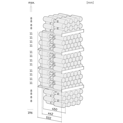 Емкость винного шкафа (в бутылках) 196