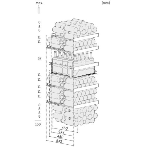 Система загрузки EasyFill удерживает дверцу винного шкафа открытой, если угол ее открытия достиг 90°. Это значительно облегчает заполнение камеры. А благодаря системе SelfClosing дверца автоматически закрывается при угле открытия менее 90°: очень плавно, как того требует бережное обращение с ценными винами. Устройства Liebherr отличаются максимальной энергоэффективностью и самыми низкими эксплуатационными расходами. Мы используем только природные и безопасные для окружающей среды хладагенты R 600a и R 290. В сочетании с высокоэффективными компрессорами это чрезвычайные мощные устройства. А благодаря низкому потенциалу глобального потепления — еще и ориентированные на будущее. Благодаря многолетнему опыту в сфере холодильной техники, а также непрерывному проведению исследовательских работ, компания Liebherr смогла обеспечить высочайшее качество системы охлаждения, устанавливаемой в своих приборах. Использование высококачественных компрессоров, конденсаторов, испарителей, а также других компонентов системы охлаждения обеспечило существенное снижение потребления энергии, а также уменьшение эксплуатационных расходов приборов Liebherr. Оптимальная влажность воздуха – это один из важнейших критериев для правильного хранения вин. Это позволяет сохранить эластичность пробок и предотвращает их высыхание. Чтобы пробка не высыхала, бутылки следует хранить в горизонтальном положении. Благодаря постоянно поддерживаемой влажности 50 % винные шкафы создают идеальные условия для хранения вина. Влажность воздуха в винных климатических шкафах может по потребности регулироваться при помощи кнопки вентиляции. Благодаря ножкам с регулировкой высоты винный шкаф можно оптимально выровнять, а также идеально установить на неровной поверхности. Это означает, что дверца всегда плотно закрывается, внутрь не попадает тепло и не образуется конденсат, а также не меняются условия хранения, что сохраняет качество вина. Иногда недостаточно просто защитить вина с помощью замка. Важно также предотвратить несанкционированное использование винного шкафа. Очень надежным решением этой задачи является новая функция блокировки дисплея, которая активируется в меню. Трехзначный PIN-код защищает ваши настройки, а значит, гарантирует оптимальные условия для хранения вин.