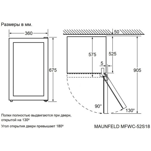 Современный винный шкаф MFWC-52S18 – инновационное решение проблемы качественного хранения вина. Расширенная функциональность, изысканный дизайн, полноценная имитация условий «винного погреба» – всё это винный шкаф MFWC-52S18. В нем можно хранить до 18 бутылок при температуре от 5 ° C до 20 ° C. Напитки нужной температуры, всегда готовые к подаче. Широкий температурный диапазон винного шкафа (от 5 ° C до 20 ° C) позволит хранить красные, белые и игристые вина, а также подготавливать их к подаче. Винный шкаф MFWC-52S18 в полной мере обеспечивает сохранность вина при правильной температуре, позволяет напитку дозревать, раскрывая его вкус и аромат. Внутреннее пространство рассчитано на хранение до 18 бутылок. При желании можно извлечь полку и разместить большее количество бутылок. Для размещения винных бутылок, шкаф оснащен 4 крепкими полками из массива бука. Изысканный дизайн модели делает её абсолютным выбором большинства: корпус выполнен из металла, окрашенной в чёрный цвет. Современная технология освещения зоны позволит вам в любое время эффектно продемонстрировать вашу винную коллекцию гостям. Каждая деталь модели гармонично дополняет друг друга, делая винный шкаф универсальным под любые стили интерьера. Дверца шкафа выполнена из тонированного стекла с защитой от УФ лучей. Управляйте всеми функциями винного шкафа с помощью интуитивно-понятной сенсорной панели управления одним касанием пальца. Шкаф оснащён внутренним вентилятором для равномерного распределения холодного воздуха ко всем полкам шкафа. Преимущества винного шкафа * вместительность до 18 бутылок; * изысканный дизайн; * равномерное охлаждение и качественная циркуляция воздуха; * защита от УФ-излучения с помощью тонированного стекла; * мягкая светодиодная подсветка; * сенсорное управление; * простая система настройки уровня температуры
