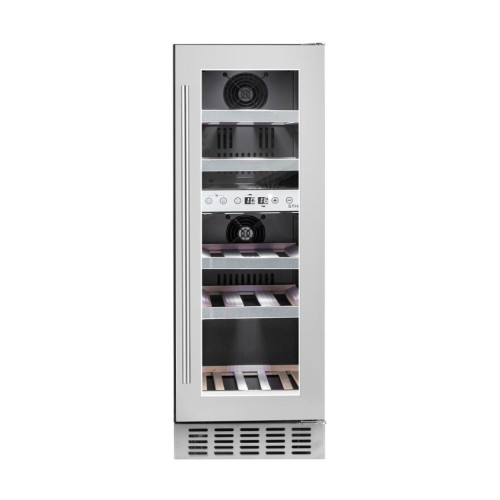 Винный шкаф Temptech STHLM STX30DS предназначен для охлаждения, хранения и демонстрации бутилированного вина. Модель оснащена сенсорной панелью с дисплеем для регулировки температуры и освещения, 5 выдвижными полками и белой светодиодной подсветкой. Дверца выполнена из трехслойного стекла с защитой от УФ-лучей, передняя панель - из нержавеющей стали, ручка - из стали, полки - из необработанного бука с деталями из нержавеющей стали. Особенности: * Независимая регулировка температуры в каждой зоне * Оптимальная влажность * Стабильная температура * Вентиляторы, обеспечивающие циркуляцию воздуха * Бесшумный компрессор * Специально разработанные ножки - гасители вибрации * Встраивается под столешницу или устанавливается как отдельностоящий * Хладагент: R600a * Энергетический класс: G * Современный дизайн * Сертифицировано RoHs, CE, CB, ERP