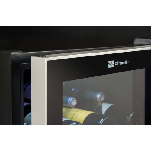 Монотемпературный шкаф для вина Climadiff CD90B1 вмещает 91 бутылку типа Бордо. Простой и в то же время строгий дизайн подойдёт как для кухни, так и для вашего личного кабинета или другого помещения, а надёжные системы хранения обеспечат лучшую сохранность ваших напитков. * Две температурные зоны с индивидуальной настройкой * 4 выдвижные полки из дерева (бук) * Скрытая ручка интегрированная в дверцу * Антивибрационная система (изоляция корпуса пенополиуретаном, компрессор на специальных сайлентблоках ) * Дверца с двойным стеклом и УФ-фильтром * Рамка дверцы из нержавеющей стали * Перенавешиваемая дверца * Сенсорная панель управления с цифровым дисплеем * LED подсветка, отключаемая * Активный вентилятор для поддержания равномерной температуры внутри винного шкафа * 2 ножки с регулировкой высоты * Блокировка настроек от детей