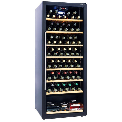 Винный шкаф Cavanova CV100T имеет одну зону охлаждения и предназначен для хранения 100 бутылок типа бардо. Его высококачественные материалы изготовления обеспечивают надежность, долговечность и прочность каждого элемента конструкции. Панель управления расположена на корпусе за стеклянной дверцей с защитой от УФ излучения. Одним нажатием на кнопку управления, можно переключать температурные режимы для красных и для белых вин.