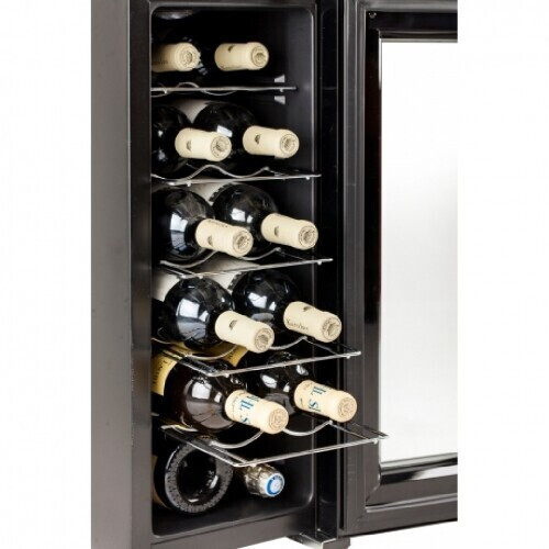 Двухкамерный винный шкаф Cavanova CV012-2T позволяет одновременно хранить красные и белые вина в отдельных камерах с разными температурами либо одну температурную зону можно отвести для хранения вин, другую — для сервировки. Уникальность дизайна выражается в том, что нижняя часть дверцы шкафа имеет зеркальное покрытие и скрыта от посторонних глаз полностью а верхняя камера просматривается за тонированным стеклом. Вместимость каждой камеры - по 6 бутылок типа бордо.