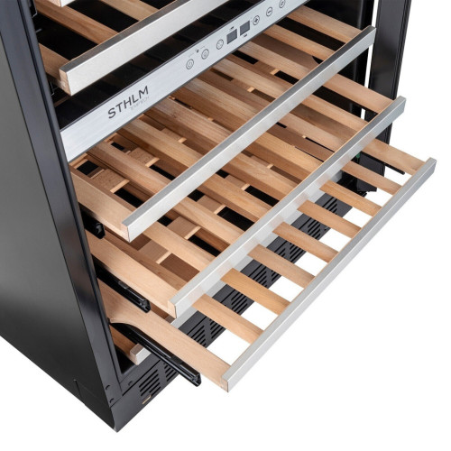 Винный шкаф Temptech STX60DS предназначен для охлаждения, хранения и демонстрации бутилированного вина. Модель оснащена сенсорной панелью с дисплеем для регулировки температуры и освещения, 6 выдвижными полками, фильтром с активированным углем и белой светодиодной подсветкой. Дверца выполнена из трехслойного стекла с защитой от УФ-лучей, передняя панель - из нержавеющей стали, ручка - из стали, полки - из необработанного бука с деталями из нержавеющей стали. Особенности: * Независимая регулировка температуры в каждой зоне * Оптимальная влажность * Стабильная температура * Вентиляторы, обеспечивающие циркуляцию воздуха * Бесшумный компрессор * Антивибрация на полках * Специально разработанные ножки - гасители вибрации * Встраивается под столешницу или устанавливается как отдельностоящий * Хладагент: R600a * Энергетический класс: G * Современный дизайн * Сертифицировано RoHs, CE, CB, ERP