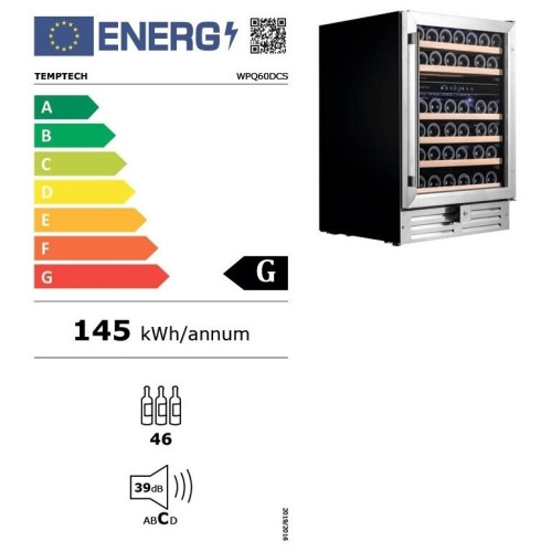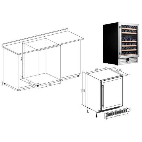 встраиваемый винный шкаф, 145л, 2-камерный, 59.5x57x86.3см, серебристый