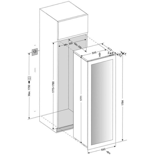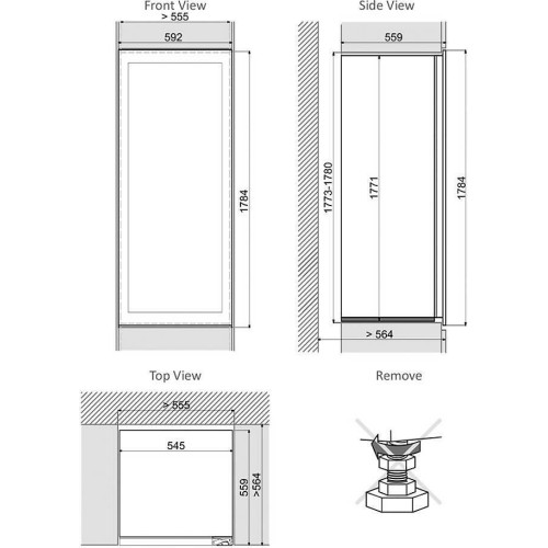встраиваемый винный шкаф, 288л, 59.2x55.9x177.1см, чёрный