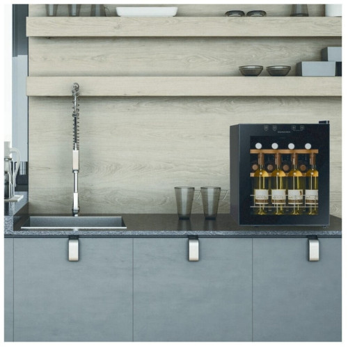 Описание: Компрессорный винный шкаф Dunavox DXFH-16.46 Инженеры компании Dunavox разработали новую модель отдельностоящего винного шкафа DXFH-16.46. Модель идеально вписывается в любой подходящий для Вас интерьер гостиной кухни, бара или кабинета. Двойное стекло с защитой от прямых УФ-лучей поддерживает качественные условия хранения вина. Компрессорный винный шкаф Dunavox DXFH-16.46 обладает средней вместимостью и способен разместить в себе до 16 бутылок. Располагаются они на выдвижных полках из массива бука. Внутреннее пространство шкафа имеет одну температурную зону с возможностью настраивать её в диапазоне от +5 °C до +18°C. Электронный термостат помогает стабильно поддерживать заданную Вами температуру. Холодильник поддерживает влажность в диапазоне 60-80%, как в настоящем винном погребе. Лаконичный дизайн шкафа придаёт интерьеру современный вид. В этой модели использовано освещение синего цвета, которое обеспечивает равномерную подсветку всех полок. (Освещение плавно включается при открывании дверцы, а через пару секунд после закрытия плавно гаснет.) Удобное и понятное сенсорное управление, исключает вероятность случайного нажатия. Винный шкаф DXFH-16.46 – современное решение в вопросе хранения вин. Отличительные особенности: Элегантный дизайн Одна температурная зона Затемненное стекло с УФ-фильтром Светодиодное освещение Плавное включение и выключение освещения Класс энергоэффективности G Сенсорное управление Dunavox оставляет за собой право изменять параметры без предварительного уведомления. Дополнительные параметры Количество зон одна Температурный режим +4.+18 °C Количество бутылок 16 шт. Условие эксплуатации +10.+32 °C Возможность встроить нет Хладагент R600a Охлаждение динамическое Вид охлаждения компрессорное Дверь в черной пластиковой раме со стеклом с защитой от УФ Полки деревянные Подсветка LED, голубая Объем 46 л. Внутренняя влажность 30-70 % (поддержание через ёмкость с водой) Энергопотребление в сутки 0,403 кВт Энергетический класс G (по таблице классов 2021г.) Номинальное напряжение 220 В, 50 Гц Корпус черный металлический Разморозка автоматическая Угольный фильтр нет Зимний режим нет Перевеска двери нет Замок нет Управление сенсорное Уровень шума 43 дБ Размеры (ШхГхВ) 430х480х510 мм Масса (без упк/ в упк.) 18/23 кг Размеры в упк. (ШхГхВ) 480х530х550 мм Гарантия производителя 3 года