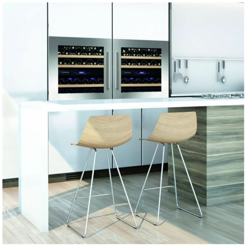 Описание: Компрессорный винный шкаф Dunavox DAVS-25.63DSS Инженеры компании Dunavox разработали новую модель встраиваемого винного шкафа DAVS-25.63DSS. Модель идеально вписывается в любой подходящий для Вас интерьер гостиной кухни, бара или кабинета. Двойное стекло с защитой от прямых УФ-лучей поддерживает качественные условия хранения вина. Компрессорный винный шкаф Dunavox DAVS-25.63DSS обладает средней вместимостью и способен разместить в себе до 25 бутылок. Располагаются они на выдвижных полках из массива бука. Внутреннее пространство шкафа разделено на две температурные зоны с возможностью настраивать каждую в диапазоне от +5 °C до +20°C. Электронный термостат помогает стабильно поддерживать заданную Вами температуру. Холодильник поддерживает влажность в диапазоне 60-80%, как в настоящем винном погребе. Лаконичный дизайн шкафа придаёт интерьеру современный вид. Дверь выполнена из бесшовной нержавеющей стали. В этой модели использовано освещение янтарного, белого и синего цвета, которое обеспечивает равномерную подсветку всех полок. (Освещение плавно включается при открывании дверцы, а через пару секунд после закрытия плавно гаснет.) Удобное и понятное сенсорное управление, исключает вероятность случайного нажатия. Винный шкаф DAVS-25.63DSS – современное решение в вопросе хранения вин. Отличительные особенности: Две температурные зоны Реверсивная дверь Дверца из бесшовной нержавеющей стали Затемненное стекло с УФ-фильтром Светодиодное освещение Плавное включение и выключение освещения Класс энергоэффективности G Сенсорное управление Dunavox оставляет за собой право изменять параметры без предварительного уведомления. Дополнительные параметры Количество зон две Температурный режим +5.+20 °C Количество бутылок 25 шт. Условие эксплуатации +16.+38 °C Возможность встроить есть (и в колонну, и под столешницу) Хладагент R600a Охлаждение динамическое Вид охлаждения компрессорное Дверь в серебристой раме со стеклом с защитой от УФ Полки 3 шт, деревянные Подсветка LED, по периметру шкафа (3 цвета: белая, янтарная и голубая) Объем 63 л. Внутренняя влажность 30-60 % (поддержание через ёмкость с водой) Потребляемая мощность 80 Вт Энергопотребление в сутки 0,359 кВт Энергетический класс G (по таблице классов 2021г.) Номинальное напряжение 220 В, 50 Гц Корпус черный, металлический Разморозка автоматическая Угольный фильтр есть Зимний режим нет Перевеска двери есть Замок нет Управление сенсорное Уровень шума 39 дБ Размеры (ШхГхВ) 590х563х595 мм Масса (без упк./в упк.) 38 / 43 кг Размеры ниши (ШхГхВ) 555х577х592 мм Размер в упаковке (ШхГхВ) 655х656х675 мм Гарантия производителя 3 года