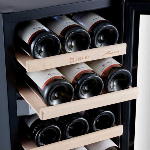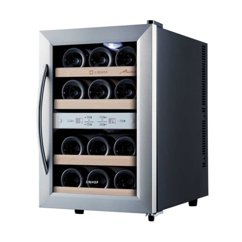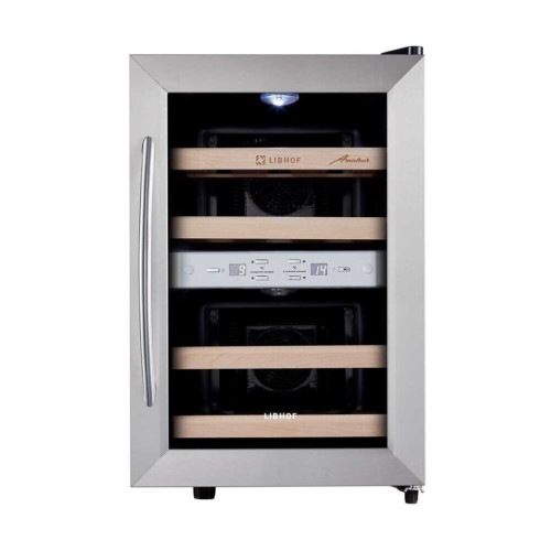 Шкаф для вина Libhof AFD-12 работает по термоэлектрическому принципу, который основан на использовании эффекта Пельтье. Основное преимущество данной модели – отсутствие губительных для бутылок с вином вибраций. Шкаф отлично подойдет для хранения белых и красных вин, требующих дозревания перед употреблением, а также уже готовых к сервировке. Благодаря наличию двух температурных зон шкаф отлично подойдет для хранения белых и красных вин, требующих дозревания перед употреблением, а также уже готовых к сервировке. Специальное покрытие на стеклянной двери защитит Ваши бутылки от солнечного света и, в частности, от УФ-излучения, которое может быстро нанести необратимый вред вину в результате окисления танинов. Полки из массива бука устойчивы к воздействию влаги. Удобная панель управления с дисплеем и цифровым термометром находится за стеклом: для контроля работы не нужно открывать дверцу. Модель имеет стильный дизайн и будет отлично смотреться в любом интерьере.