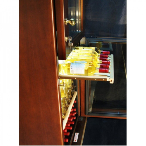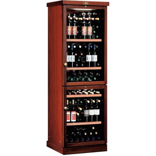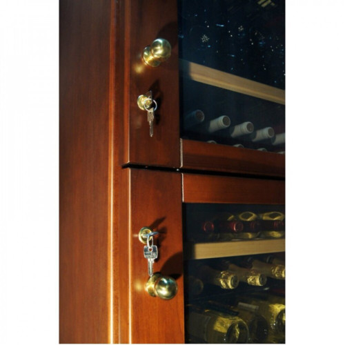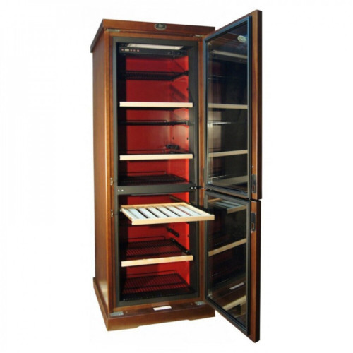 инный шкаф IP Industrie CEX 601 CU в полной мере обеспечивает сохранность вина при правильной температуре, позволяет напитку дозревать, раскрывая его вкус и аромат. Модель CEX 601 GS имеет 2 температурные зоны охлаждения и обеспечивает возможность размещения отдельно белого и красного вина. Корпус шкафа IP Industrie CEX 601 CU металлический, внешняя отделка выполнена из древесины Risto Line в шести цветовых решениях. Модель двухдверная, дверцы - из двойного стеклопакета с защитой от уф лучей, имеют каждая встроенный замок и удобную ручку в классическом стиле. Модель оснащена статической системой охлаждения на базе компрессора SECOP (Danfoss), которая понижает температуру вина и сохраняет оптимальную влажность внутри камеры. Комплектуется шкаф девятью полками. Винный шкаф IP Industrie CEX 601 CU предназначен для использования как отдельностоящий.