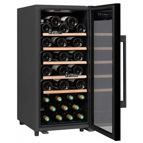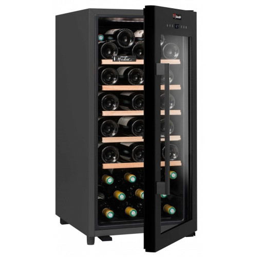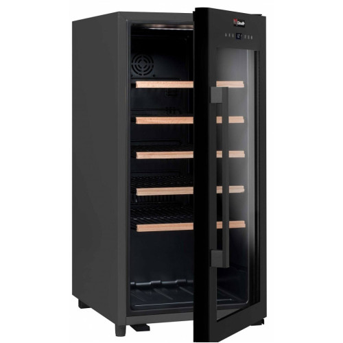 Монотемпературный шкаф для подготовки вина Climadiff CS41B1 рассчитан на хранение 41 бутылки стандартного типа Бордо. Благодаря простому управлению использование этой модели становится чрезвычайно простым, а хранение напитков надёжным, как никогда. Простой, но эффектный дизайн элементов шкафа делает его подходящим для любой обстановки. * 5 выдвижных полок из металла с декором из дерева * Большая удобная ручка под цвет дверцы * Антивибрационная система (изоляция корпуса пенополиуретаном, компрессор на специальных сайлентблоках ) * Дверца с двойным стеклом и УФ-фильтром * Сенсорная панель управления с цифровым дисплеем на дверце * LED подсветка, отключаемая * Активный вентилятор для поддержания равномерной температуры внутри винного шкафа * 2 ножки с регулировкой высоты