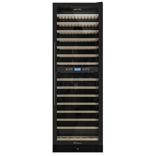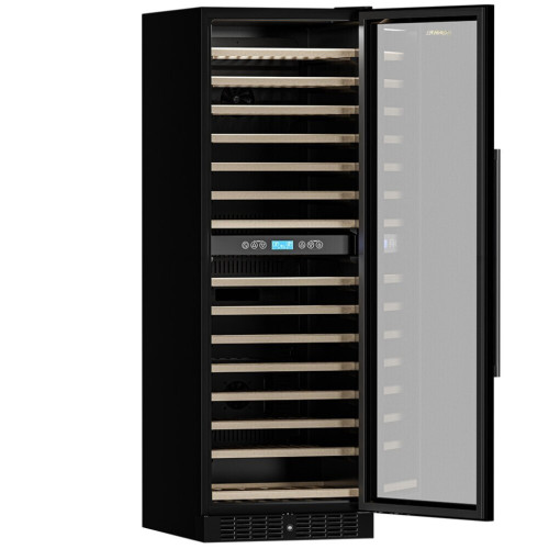 Модель MV160-KBT2 имеет привлекательный внешний вид, сочетающий в себе неподвластное времени очарование натуральных материалов с высокотехнологичными системами сохранения продуктов. Винный холодильник Meyvel MV160-KBT2 оснащен дверью с защитой от ультрафиолетовых лучей и отлично подойдет для хранения и созревания различных сортов вин. Динамическая система охлаждения обеспечивает оптимальную температуру для вина и сохраняет необходимую влажность внутри камеры. Универсальный микроклимат Компрессорный винный шкаф Meyvel MV160-KBT2 обладает большой вместимостью и способен разместить до 160 бутылок. Располагаются они на полках из массива бука. Внутреннее пространство шкафа разделено на 2 температурные зоны с возможностью настраивать каждую из них: диапазон нижней зоны от +10°C до +18°C, а верхней - от + 5°C до +10°C. Холодильник поддерживает влажность в диапазоне 60-80%, как в настоящем винном погребе. Удобная установка и управление Быстро задавайте необходимую температуру для содержимого и управляйте всеми функциями холодильника с помощью интуитивно-понятного расположения кнопок на сенсорном дисплее. Так же, эта модель имеет возможность регулировать ножки по высоте, что позволяет установить шкаф в любое удобное место на Вашей кухне. Преимущества винного шкафа Meyvel MV160-KBT2 * Вместимость 160 бутылок 0,75 л; * Две температурные зоны; * Общий температурный диапазон от +5°C до +18°C; * Память настроек; * Удобное сенсорное управление; * Автоматическая разморозка; * Тройное стекло с УФ-фильтром; * Наличие двух полок с увеличенным пространством, для размещения нестандартных бутылок; * Стальной чёрный корпус; * Можно установить шкаф отдельно или встроить в колонну; * Возможность регулировать ножки; * Выдвижные полки из массива бука.