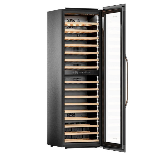 Модель MV83-KBB2 имеет привлекательный внешний вид, сочетающий в себе неподвластное времени очарование натуральных материалов с высокотехнологичными системами сохранения продуктов. Винный холодильник Meyvel MV83-KBB2 оснащен дверью с защитой от ультрафиолетовых лучей и отлично подойдет для хранения и созревания различных сортов вин. Динамическая система охлаждения обеспечивает оптимальную температуру для вина и сохраняет необходимую влажность внутри камеры. Компрессорный винный шкаф Meyvel MV83-KBB2 обладает большой вместимостью и способен разместить до 83 бутылок. Располагаются они на полках из массива бука. Внутреннее пространство шкафа разделено на 3 температурные зоны с возможностью настраивать каждую из них. Общий температурный диапазон от +5°C до +18°C. Холодильник поддерживает влажность в диапазоне 60-80%, как в настоящем винном погребе. Быстро задавайте необходимую температуру для содержимого и управляйте всеми функциями холодильника с помощью интуитивно-понятного расположения кнопок на электронном дисплее. Преимущества винного шкафа Meyvel MV83-KBB2: * Вместимость 83 бутылки 0,75 л; * Температура верхней зоны от +5°C до +18°C; * Температура средней зоны от +5°C до +10°C; * Температура нижней зоны от +10°C до +18°C; * Возможность перенавешивания двери; * Наличие угольного фильтра; * Память настроек; * Удобное электронное управление; * Внутренний вентилятор, отдельный для каждой зоны, позволяет равномерно распределять температуру.; * Двойное стекло с УФ-фильтром; * Встраивается в нишу; * Выдвижные полки из массива бука.