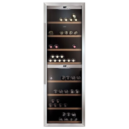 Общие данные: Размеры: высота: 186 см. ширина: 59,5 см. глубина: 65 см. Общий объем: 610 л. Максимальное количество бутылок: 180. Тип управления: электронный. Климатический класс: ST (от +18°C до +38°C). Класс энергопотребления: C. Годовое потребление энергии: 293 кВтч. Цвет: черный/стальной. Полки: 8 деревянных. Количество температурных зон: 2. Диапазон температур: 5-22° С. Тип системы охлаждения: компрессорный. Отключаемое внутреннее освещение. Активная вентиляция.