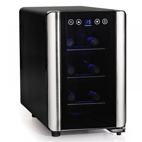 Термоэлектрический винный холодильник Cold Vine C6-TBSF1 с безкомпрессорной системой охлаждения работает тихо и не вибрирует. На его трех хромированных полках помещаются 6 бутылок «Бордо» или шампанского. Для размещения больших бутылок полки можно вынимать. У холодильника широкий диапазон рабочих температур, поэтому в нем можно охлаждать и хранить красные, белые, игристые вина. Управляется он с помощью сенсорной панели на дверце. Стильный черный корпус и застекленная, со стальным обрамлением дверца делают дизайн модели особенно эффектным.