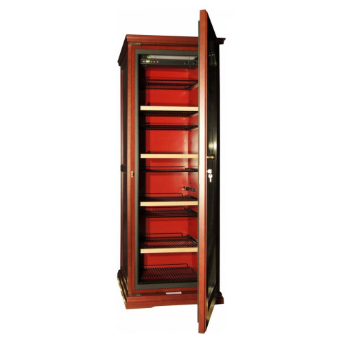 цвет вишня Температурный режим монотемпературный. Тип управления электронное. Количество бутылок (макс.) 138. Масса 115 кг (нетто). Напряжение 220/240 В, 50 Гц. Наружные размеры (ШхГхВ) 760х640х2000 мм. Объём 420 литров. Производство Италия. Система охлаждения статическая. Температурные зоны 1. Температурный диапазон +4... +18 °C. Тип управления электронное. Хладагент R 134. Полки 5 (4 регулируемые). Подсветка неон. Расположение бутылок горизонтальное, вертикальное. Видвижные полки 1. Дисплей цифровой. Размораживание автоматическое. Мощность 240 Ватт. Влажность 60-70%. Зимний режим есть. Замок встроенный. Компрессор 1. Дверь двойное стекло, защита УФ. Уровень шума 45 Дб. Класс энергопотребления А. Энергопотребление (годовое) 123 кВт.