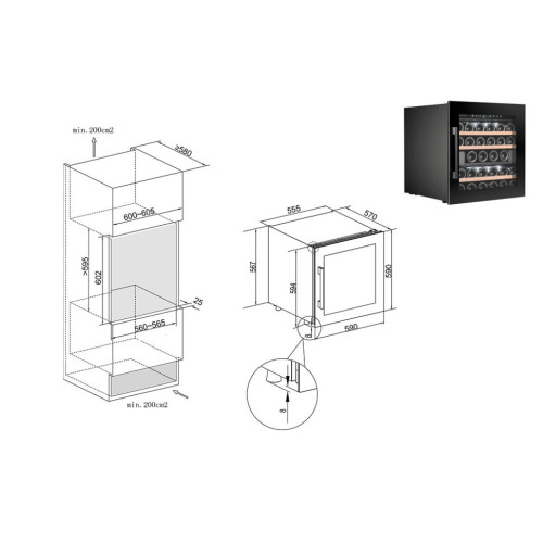 * Высококачественный современный винный шкаф с эксклюзивным дизайном для бесшовного встраивания в кухню. * Две температурные зоны (5-20°C, 5-20°C), физически разделённые и с индивидуальной настройкой температуры в каждой зоне. * Стильный дизайн с черной стеклянной дверцей, выдвижными полками из бука и белой внутренней светодиодной подсветкой. * Сенсорная панелью и цифровой дисплей. * Ваша винная коллекция хранится в надежном месте с правильной и стабильной температурой, оптимальной влажностью, низким уровнем вибрации и чистым воздухом! * Ваша винная коллекция надежно хранится за дверцей с УФ-фильтром, которая защищает ее от вредных ультрафиолетовых лучей и тепла, которые могут попасть внутрь прибора. * Стеклопакет дверцы заполнен аргоном, что существенно снижает теплопотери. * Данная модель винного шкафа оборудована вентиляторами, которые обеспечивают в нем циркуляцию воздуха, поддерживая постоянную и стабильную температуру. Конденсат используется повторно и поддерживает в приборе оптимальную влажность, а активный угольный фильтр обеспечивает свежий и чистый воздух. * Об охлаждении вина заботится тихий компрессор с низким уровнем шума. Компрессор не только тихий, но и опирается на специально разработанные ножки гасители вибрации, которые защищают вино от вредных вибраций.
