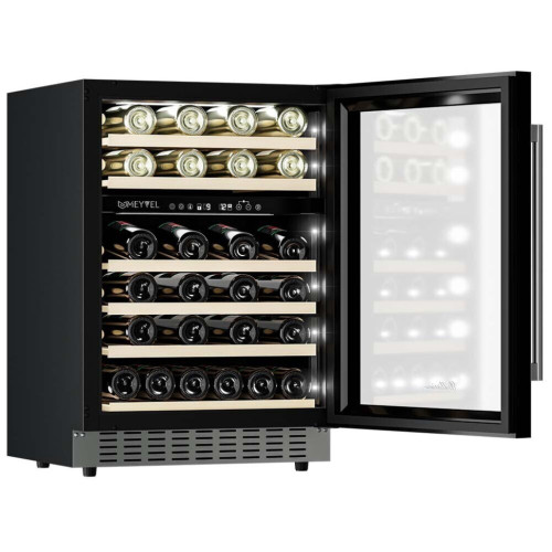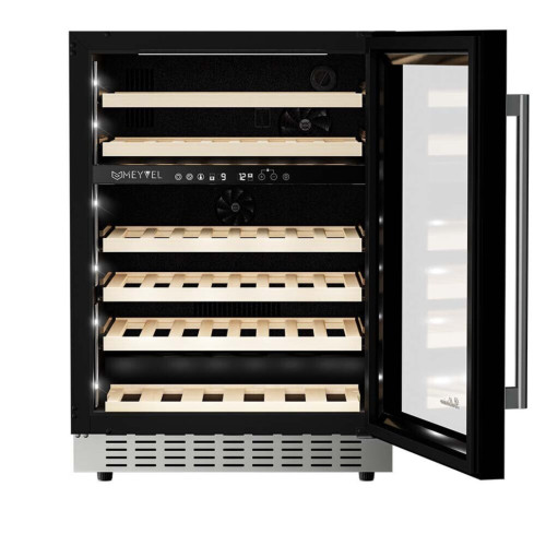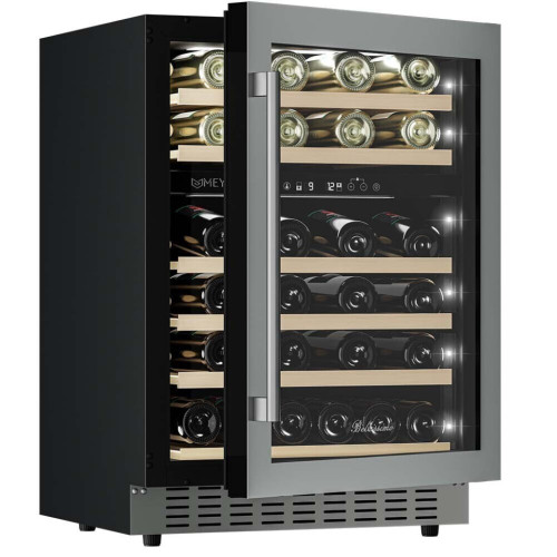 Винный шкаф Meyvel MV46PRO-KST2 имеет привлекательный внешний вид, сочетающий в себе неподвластное времени очарование натуральных материалов с высокотехнологичными системами сохранения продуктов. Винный холодильник Meyvel MV46PRO-KST2 оснащен дверью с защитой от ультрафиолетовых лучей и отлично подойдет для хранения и созревания различных сортов вин. Динамическая система охлаждения обеспечивает оптимальную температуру для вина и сохраняет необходимую влажность внутри камеры. Компрессорный винный шкаф Meyvel MV46PRO-KST2 обладает большой вместимостью и даёт возможность разместить до 46 бутылок стандартного типа Бордо (0,75 л). Располагаются они на выкатных полках из дерева. Внутреннее пространство шкафа разделено на 2 температурные зоны, с возможностью настраивать каждую из них. Диапазон верхней зоны варьируется от +5°C до +12°C, а нижней - от +12°C до +20°C. Быстро задавайте необходимую температуру для содержимого и управляйте всеми функциями холодильника с помощью интуитивно-понятного расположения клавиш на сенсорном дисплее. Meyvel MV46PRO-KST2 отлично подходит для расположения на любой кухне. Шкаф можно встроить под столешницу и отрегулировать ножки по высоте, а так же, перенавесить дверь для более удобного использования (петли входят в комплект). В винный шкаф встроен угольный фильтр, который будет очищать поступающий воздух от посторонних запахов, которые губительно влияют на вкусовые качества вина. Рекомендуем проводить замену фильтра 1 раз в год. Преимущества винного шкафа Meyvel MV46PRO-KST2: * Вместимость 46 бутылок стандартного типа Бордо (0,75 л); * Возможность как встроить шкаф под столешницу, так и установить отдельно; * Углубленный цоколь; * Две температурные зоны; * Съёмная ручка; * Тройное стекло с УФ-фильтром; * Общий температурный режим от +5°C до +20°C; * Удобное сенсорное управление; * Световой и звуковой сигналы при открытой двери (более 2 минут); * Электронный термостат; * Удобное обозначение зон на сенсорной панели; * Угольный фильтр; * Перенавешиваемая дверь (петли в комплекте); * Регулируемые ножки; * Демонстрационное освещение; * Панорамное освещение; * Выдвижные полки.