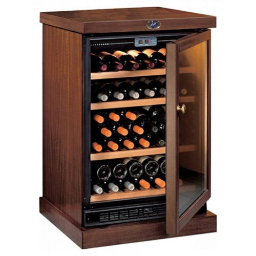 Наименование Значение. Тип оборудования. Винный шкаф. Тип охлаждения. Компрессорный. Тип установки. Отдельностоящий. Вместимость бутылок Бордо, шт 45*. Количество зон 1. Рабочая температура от +5°C до +18°C. Влажность, % 60 - 70. Хладагент R134a. Разморозка Автоматическая. Энергопотребление, кВт 0,14. Напряжение, В 220. Тип стекла Тонированный с УФ фильтром. Подсветка Есть. Корпус Металлический в деревянном коробе Risto Line. Рамка двери Деревянная . Полки Деревянные. Размеры шкафа ВхШхГ, мм 980х593х670. Вес брутто, кг 68.