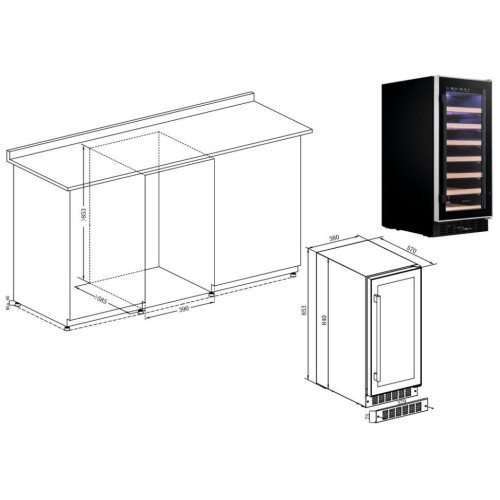 встраиваемый винный шкаф, 88л, чёрный