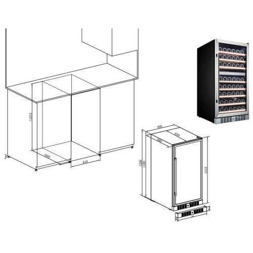 встраиваемый винный шкаф, 270л, 59.5x68x121.5см, чёрный