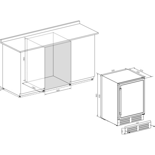 встраиваемый винный шкаф, 145л, 1-камерный, 59.5x57x86.3см, чёрный