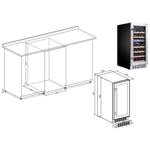 встраиваемый винный шкаф, 88л, 1-камерный, 38.5x57x85.3см, чёрный