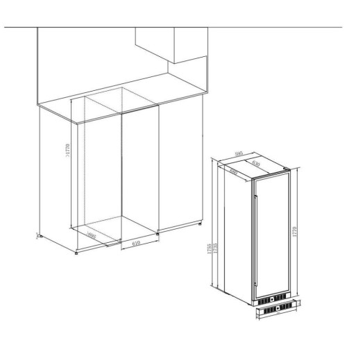 тип винного шкафа: двухтемпературный, высота: 177 см, ширина: 59.50 см, глубина: 68 см, емкость винного шкафа, бут.: 163, количество камер: 1, класс энергопотребления: G