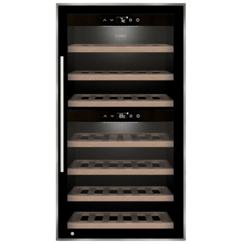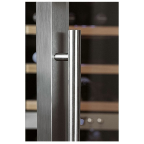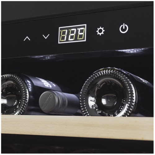 Основные характеристики - Тип: климатический шкаф - Тип установки: отдельностоящий - Тип компрессора: стандартный - Количество компрессоров: 1 - Количество отделений: 1 - Общий полезный объем: 205 л - Максимальное количество бутылок: 66 - Назначение винного шкафа: для длительного хранения Охлаждение - Тип системы охлаждения: компрессорная - Система охлаждения: динамическая - Хладагент: R600a (изобутан) - Климатические класс: ST Управление - Тип управления: электронное - Способ управления: сенсорный - Расположение панели управления: в камере Дисплей - Цифровой дисплей: да Температурные режимы - Количество температурных зон: 2 - Температура хранения: 5-20 °C Отделения - Количество полок: 7 - Тип полок: выдвижные Индикация - Индикация температуры: да - Индикация включения: да Электропитание - Класс энергопотребления: A - Энергопотребление: 149 кВтч/год - Напряжение: 220-240 B - Мощность подключения: 60 Вт - Уровень шума: 41 дБ Защита и безопасность - Встроенный замок: да Освещение - Тип освещения: светодиодное (LED) Функции и возможности - Независимая регулировка температуры в камерах: да Особенности конструкции - Количество дверей: 1 - Тип двери: прозрачная - Открытие дверцы: направо - Перенавешиваемые двери: да - Ручка легкого открывания: да - Тонированное стекло на двери: да - Встроенный вентилятор для распределения температуры: да Цвет и материал - Цвет ручек: серебристый - Цвет полок: бежевый - Материал боковых стенок: металл - Материал полок: дерево - Материал ручек: металл Комплектация - Инструкция: да Размеры и вес - Высота: 103.5 см - Ширина: 59.5 см - Глубина: 63 см - Вес: 56.7 кг