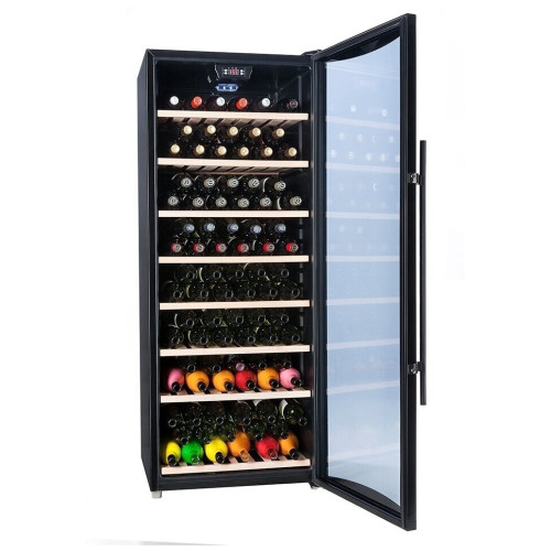 Компрессорный винный шкаф Cavanova TW100T имеет одно зону охлаждения и предназначен для хранения 100 бутылок типа бардо. Его высококачественные материалы изготовления обеспечивают надежность, долговечность и прочность каждого элемента конструкции. Панель управления расположена на корпусе за стеклянной дверцей с защитой от УФ излучения. Одним нажатием на кнопку управления, можно переключать температурные режимы для красных и для белых вин. Этот винный холодильник является самым вместительным из модельного ряда Cavanova HoReCa. Особенности 8 выдвижных деревянных полок. Компрессорная система охлаждения. Минимальное энергопотребление. Пониженный уровень шума Характеристики Отдельностоящий Монотемпературный Вместимость 100 бут. Система охлаждения компрессорная Температурный режим от 5 до 22 °C Стеклянные двери Дверной упор петли справа Цвет черный