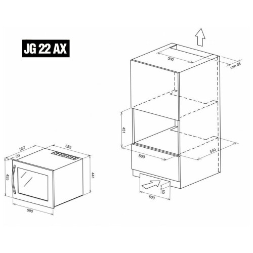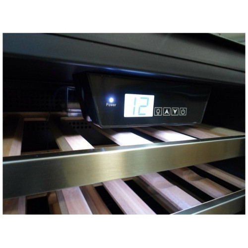 Винный шкаф IP Industrie JG 22 AX — встраиваемая модель с одной температурной зоной. Он рассчитан на 22 стандартных бутылки вина типа Бордо. Винный шкаф создает все необходимые условия для хранения винных коллекций, точно поддерживает необходимую температуру и защищает вино от УФ лучей солнечного света и вибраций. Для удобства использования он оборудован подсветкой и автоматической разморозкой. Количество зон: однаТемпературный режим: +5.+18 °CКоличество бутылок: 22 шт. Условие эксплуатации: +18.+35 °CХладагент: R600aОхлаждение: динамическоеДверь: стеклянная с защитой от УФПолки: 3 шт деревянныеПодсветка: естьВнутренняя влажность: 30 - 60 % (ванночка с водой)Потребляемая мощность: 71 ВтЭнергопотребление в сутки: 0,313 кВтЭнергетический класс: AНоминальное напряжение: 220 В, 50 ГцКорпус: металлический, черныйРазморозка: автоматическаяУгольный фильтр: нетЗимний режим: нетПеревеска двери: естьЗамок: нетУровень шума: 42 дБРазмеры (ШхГхВ): 590х557х455 ммМасса (без упаковки): 27 кг
