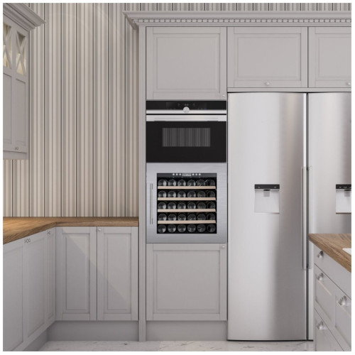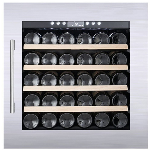 Основные характеристики - Тип: климатический шкаф - Тип установки: встраиваемый - Тип компрессора: стандартный - Количество компрессоров: 1 - Количество отделений: 1 - Общий полезный объем: 90 л - Максимальное количество бутылок: 30 - Назначение винного шкафа: для длительного хранения Охлаждение - Тип системы охлаждения: компрессорная - Хладагент: R600a (изобутан) - Климатические класс: N Управление - Тип управления: электронное - Способ управления: сенсорный - Расположение панели управления: на корпусе Дисплей - Цифровой дисплей: да Температурные режимы - Количество температурных зон: 1 - Температура хранения: 5-20 °C Отделения - Количество полок: 4 - Тип полок: выдвижные Индикация - Индикация температуры: да - Индикация включения: да - Индикация режима работы: да - Индикация отключения электропитания: визуальная - Индикация повышения температуры: визуальная Электропитание - Класс энергопотребления: A+ - Энергопотребление: 106 кВтч/год - Напряжение: 220-240 B - Уровень шума: 37 дБ Защита и безопасность - Защита от детей: да Освещение - Тип освещения: светодиодное (LED) Функции и возможности - Дополнительная информация: стекло с УФ-фильтром Особенности конструкции - Количество дверей: 1 - Тип двери: прозрачная - Открытие дверцы: направо - Перенавешиваемые двери: да - Угольный фильтр: да - Встроенный вентилятор для распределения температуры: да Цвет и материал - Цвет: серебристый - Цвет ручек: серебристый - Цвет полок: бежевый - Материал двери: нержавеющая сталь, стекло - Материал полок: дерево - Материал ручек: металл Комплектация - Инструкция: да Размеры и вес - Высота: 59 см - Ширина: 59 см - Глубина: 59 см - Высота встраивания: 59.5 см - Ширина встраивания: 56 см - Глубина встраивания: 58 см - Вес: 45 кг