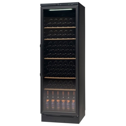 Тип: Монотемпературный, однозонный. Ширина, см: 59.5. Глубина, см: 59.5. Высота, см: 185. Объем, л: 377. Температурный режим, °C: от +6 до +18. Вместимость, бутылок: 106. Мощность, кВт: 0.125. Энергопотребление, кВт/сутки: 0.52. Класс энергопотребления: B. Вес, кг: 75. Деревянные полки, шт: 5.