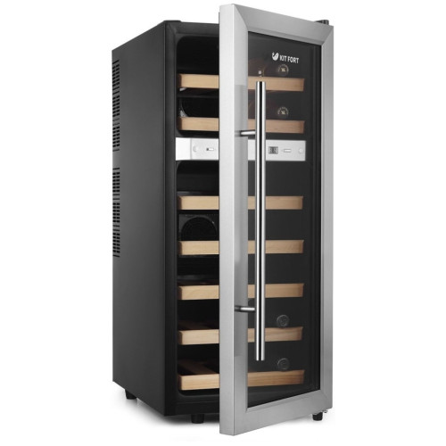 Kitfort КТ-2406 – шкаф для хранения вина, работающий по термоэлектрической технологии. Он элегантно выглядит, экономно расходует энергию и не является источником шума. Устройство можно установить как дома, так и в баре либо ресторане.почувствуйте себя коллекционером эта модель разделена на две климатические зоны, причём температура в каждой из них регулируется независимо от другой. Благодаря этому в неё можно разместить красные и белые сорта, создав для них оптимальные условия. Через дверцу с прозрачным тонированным стеклом можно любоваться бутылками, причём их содержимое надёжно защищено от окисления из-за воздействия УФ-лучей.простое управление, на фронтальной панели находится дисплей, позволяющий контролировать все настройки. Камера подсвечена LED-лампами, которые при необходимости можно отключить.