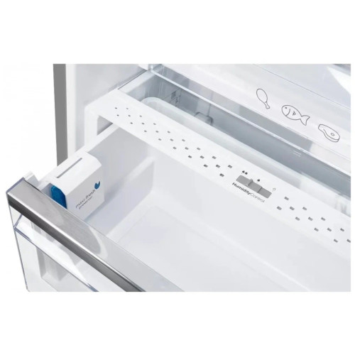 FRESH-ZONE Это зона, в которой температура воздуха приближена к 0°С и создана оптимальная для продуктов влажность. Было доказано, что большая часть свежих продуктов питания дольше всего сохраняет все вкусовые качества и полезные свойства при температуре +0,7°С. При этой температуре микроорганизмы и бактерии, способные нанести вред пище, размножаются медленнее всего. Именно поэтому зона с температурой около нуля градусов позволяет максимально долго сохранять свежесть продуктов, особенно овощей, фруктов, зелени, ягод, сыра, морепродуктов, ветчины. No Frost Функция No Frost предотвращает появление обледенения на продуктах и поверхности холодильника благодаря постоянной циркуляции холодного воздуха. Антибактериальный пластик Антибактериальное покрытие изготавливается из полимеров созданных на основе ионов серебра, которые не позволяют размножаться бактериям на поверхностях камер холодильника. Это способствует более длительному и качественному хранению продуктов, а также возможный вред здоровью человека исключается. Примечательно то, что это покрытие действует, ничуть не ослабевая со временем, на протяжении всего срока использования холодильника. Быстрое охлаждение Система Быстрого охлаждения в холодильнике помогает сохранять ваши продукты, за счет более быстрого достижения ими температуры хранения. Держатели бутылок Для большего удобства хранения бутылок, есть специальные отсек. В него удобно помещать и доставать бутылки. Бутылки не занимают лишнее пространство, за счет чего достигается максимально полезное заполнение объема холодильной камеры. Ионизация воздуха Холодильник оснащен системой ионизации воздуха. Это позволяет повысить срок хранения продуктов, снижает вероятность появления вредных бактерий и микробов в холодильнике, а также избавляет от распространения запахов. Ваши продукты дольше смогут сохранить свой вид, вкус и запах. Светодиодное освещение В холодильнике установлены LED светильники с приятным мягким светом, обеспечивающим хороший обзор и не вредным для продуктов, которые боятся света. Свет рассредоточен по всему объему холодильника таким образом, что все продукты будут видны. Класс энергоэффективности А+ Маркировки энергоэффективности товара производителем, обязательная процедура согласно директивам комиссии Евросоюза, имеющие буквенные обозначения от A до G, где A является наивысшей. Класс энергопотребления А+ это, использования самых современных технологий, обозначение + после буквы А означает еще большую энергоэффективность чем стандарт А. Более эффективное энергопотребление снижает затраты на электричество и экономит семейный бюджет.