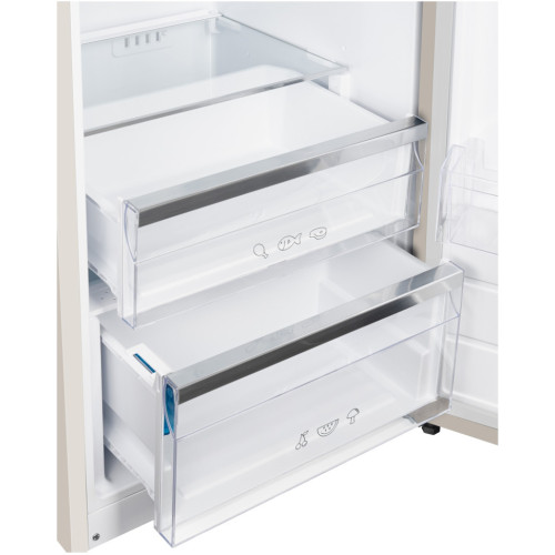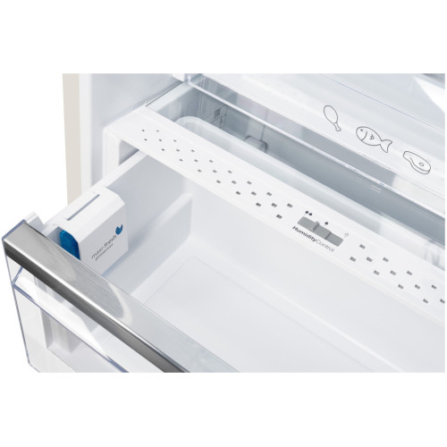 FRESH-ZONE Это зона, в которой температура воздуха приближена к 0°С и создана оптимальная для продуктов влажность. Было доказано, что большая часть свежих продуктов питания дольше всего сохраняет все вкусовые качества и полезные свойства при температуре +0,7°С. При этой температуре микроорганизмы и бактерии, способные нанести вред пище, размножаются медленнее всего. Именно поэтому зона с температурой около нуля градусов позволяет максимально долго сохранять свежесть продуктов, особенно овощей, фруктов, зелени, ягод, сыра, морепродуктов, ветчины. No Frost Функция No Frost предотвращает появление обледенения на продуктах и поверхности холодильника благодаря постоянной циркуляции холодного воздуха. Антибактериальный пластик Антибактериальное покрытие изготавливается из полимеров созданных на основе ионов серебра, которые не позволяют размножаться бактериям на поверхностях камер холодильника. Это способствует более длительному и качественному хранению продуктов, а также возможный вред здоровью человека исключается. Примечательно то, что это покрытие действует, ничуть не ослабевая со временем, на протяжении всего срока использования холодильника. Быстрое охлаждение Система Быстрого охлаждения в холодильнике помогает сохранять ваши продукты, за счет более быстрого достижения ими температуры хранения. Держатели бутылок Для большего удобства хранения бутылок, есть специальные отсек. В него удобно помещать и доставать бутылки. Бутылки не занимают лишнее пространство, за счет чего достигается максимально полезное заполнение объема холодильной камеры. Ионизация воздуха Холодильник оснащен системой ионизации воздуха. Это позволяет повысить срок хранения продуктов, снижает вероятность появления вредных бактерий и микробов в холодильнике, а также избавляет от распространения запахов. Ваши продукты дольше смогут сохранить свой вид, вкус и запах. Светодиодное освещение В холодильнике установлены LED светильники с приятным мягким светом, обеспечивающим хороший обзор и не вредным для продуктов, которые боятся света. Свет рассредоточен по всему объему холодильника таким образом, что все продукты будут видны. Класс энергоэффективности А+ Маркировки энергоэффективности товара производителем, обязательная процедура согласно директивам комиссии Евросоюза, имеющие буквенные обозначения от A до G, где A является наивысшей. Класс энергопотребления А+ это, использования самых современных технологий, обозначение + после буквы А означает еще большую энергоэффективность чем стандарт А. Более эффективное энергопотребление снижает затраты на электричество и экономит семейный бюджет.