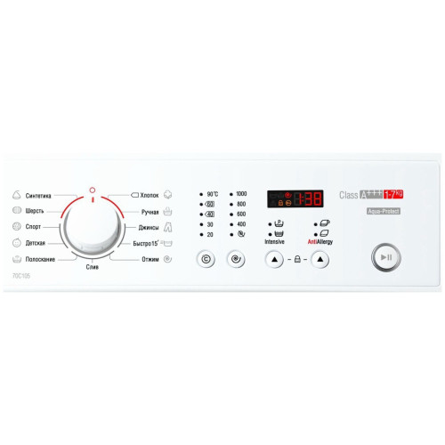 Звуковой сигнал сопровождает начало и окончание работы машины, раздается при задании несовместимых функций, при случайном нажатии кнопок во время работы машины, а также при неисправностях. При перерывах в подаче электроэнергии текущая операция программы стирки восстанавливается благодаря энергонезависимой памяти системы управления.