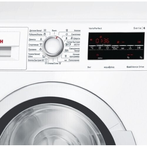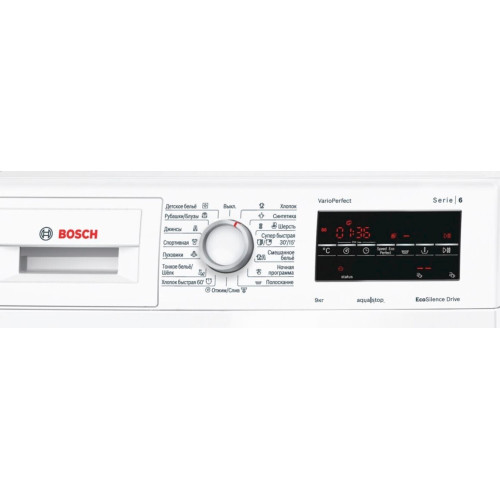 Стиральная машина Bosch WAT24440OE объёмом загрузки 9 кг оснащена инверторным мотором нового поколения EcoSilence Drive и интеллектуальной системой ActiveWater Plus. Экономия и безупречный результат Интеллектуальная система ActiveWater Plus обеспечивает максимально эффективную стирку при минимальных затратах электроэнергии и воды. Высокоточные многопозиционные сенсоры контролируют степень загрузки в зависимости от типа ткани и точно дозируют воду, необходимую для стирки и полоскания. Система VarioPerfect оптимизирует параметры программы для достижения безупречного качества стирки. Результат - чистое бельё при минимальном расходе ресурсов. Для любых типов тканей Уникальная структура барабана VarioDrum обеспечивает интенсивную или бережную стирку в зависимости от программы. Машине Bosch WAT24440OE кг можно доверить любые вещи: предусмотрены специальные программы для пуховиков, рубашек и блуз, детской и спортивной одежды, хлопка, синтетики, шёлка и шерсти. Более 20 комбинаций скорости и направления вращения барабана, а также каплеобразные выступы ассимметричной формы гарантируют бережную и эффективную стирку любых вещей, от нежных шёлковых блузок до сильно загрязнённой детской одежды. 3D-технологии Bosch WAT24440OE оснащена системой 3D AquaSpar: моющее средство подаётся сразу с трёх сторон, что значительно повышает эффективность стирки. Автоматика с 3D-сенсором контролирует дисбаланс во время отжима. Комфорт в использовании Разнообразие режимов и программ экономит ваше время и силы. Короткая программа на 15 или 30 минут быстро освежит не сильно загрязнённые вещи. Эффективная стирка в холодной воде обеспечит уход за деликатной одеждой и дополнительно сэкономит энергию. Кювета для моющих средств очищается автоматически. Фаза защиты от сминания избавляет бельё от складок и заломов - гладить его после стирки будет значительно легче. Надёжная и экономичная Bosch WAT24440OE оснащена EcoSilence Drive - тихим, эффективным и надёжным бесконтактным мотором нового поколения. Машина работает очень тихо, а специальная конструкция боковых поверхностей дополнительно снижает уровень вибрации - машину смело можно включать даже ночью. Система AquaStop гарантирует 100% защиту от протечек. Функция блокировки от детей исключит случайное изменение настроек.