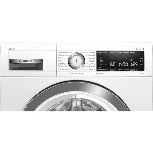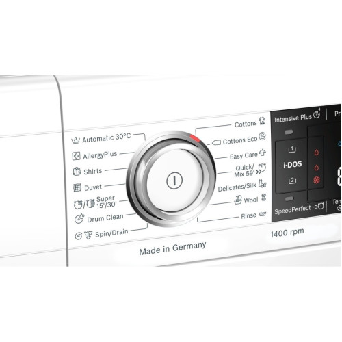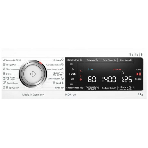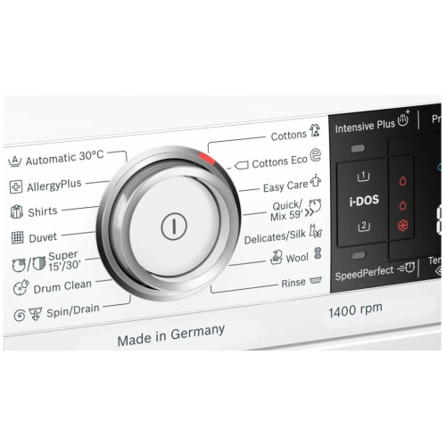Стиральная машина Bosch WAV28K90ME, 9 кг, 1400 об/мин Стиральная машина с автоматической дозировкой моющего средства Система i-DOS автоматически измеряет оптимальное количество моющего средства, с точностью до капли. После активации i-DOS выбирает дозировку в точном соответствии с количеством одежды, типом ткани и степенью загрязнения. Лучший способ удалить грязь, полностью автоматически Как достичь идеальных результатов стирки? Просто заполните барабан и нажмите кнопку «Пуск». С помощью автоматической программы стиральная машина подстраивает все настройки в зависимости от типа ткани и степени загрязненности, гарантируя идеальную стирку каждый раз. Необычайно энергоэффективный и тихий в работе, с 10-летней гарантией Точные настройки мотора с инверторным управлением, который мягко и без рывков вращает барабан, обеспечивают бережную стирку. Бесщеточный и энергоэффективный мотор нового поколения EcoSilence Drive работ значительно тише, чем обычные моторы. Деликатное отношение к вещам. Деликатное отношение к коже Bosch разработал программу AllergyPlus. При её активации на на одежде будет меньше пыльцы, шерсти животных и пылевых клещей. Эта программа получила награду ECARF за качество и признана идеальной для аллергиков и при этом щадящей для тканей. Идеальная стирка до 65% времени SpeedPerfect - это специальная функция, разработанная для ситуаций, когда время имеет значение. С SpeedPerfect вы можете сократить время стирки до 65% без ущерба для результата. Её можно использовать в сочетании с большинством программ, всеми видами загрузками и текстиля. Идеальная стирка изделий из деликатных тканей Дорогая одежда из деликатных тканей может прийти в негодность уже после первой стирки. Барабан уникальной запатентованной конструкции VarioDrum мягко удаляет сложные пятна со всех типов одежды, не растягивая, не сминая и не повреждая её. Ваш гардероб достоин стирки профессионального качества. Добавьте вещи в любой момент Забыли постирать детский носок или свою рубашку? Не проблема. Дозагрузка от Bosch позволяет добавить или убрать лишнюю одежду прямо во время стирки. Просто нажмите на кнопку «Пауза» и откройте дверцу стиральной машины, добавьте необходимые вещи о которых вы забыли в самом начале стирки и продолжите цикл стирки. Программа DrumClean с функцией напоминания - для очистки и ухода за барабаном Не знаете, когда нужно почистить барабан? Не волнуйтесь, это не имеет значения. Когда стиральная машина используется при температуре 40 ? и непрерывной работе 20 раз, программа «Чистка барабана» сама напомнит вам о необходимости очистки барабана. Стандартные программы: Деликатная стирка ? Бережный уход ? Ручная стирка шерсти ? Стирка белых и цветных вещей ? Специальные программы: Рубашки / блузы ? Детская одежда ? Смешанное белье ? Занавески ? Супер 15 / Супер 30 ? Шерсть ? Тонкое белье / шелк ? Сделано в Германии Язык дисплея- английский