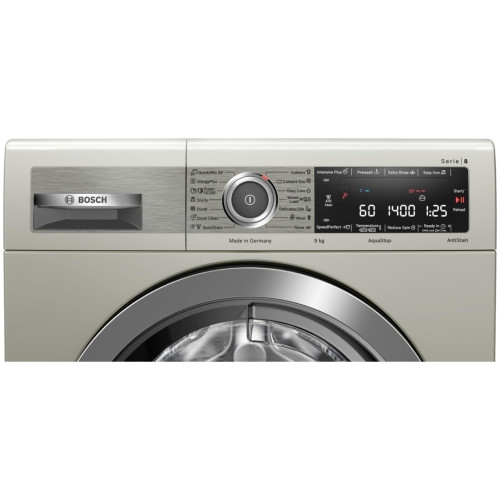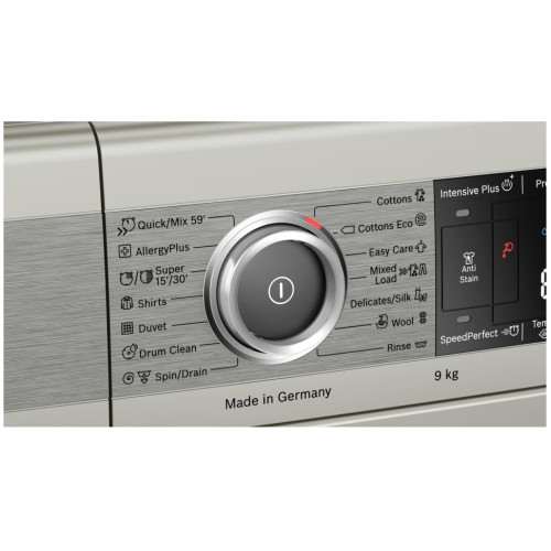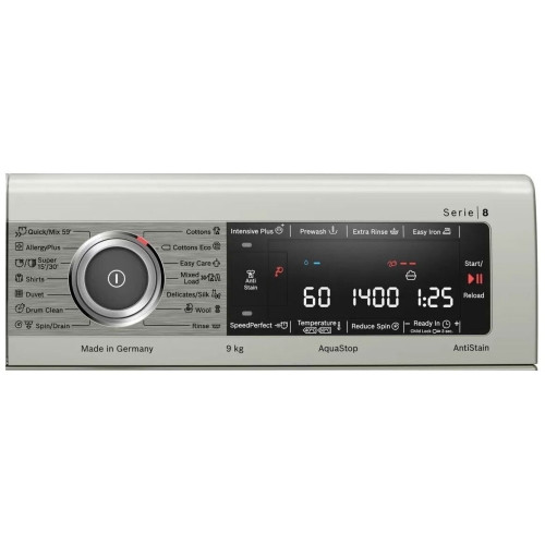 Общая информация Встраиваемый/ свободностоящий Отдельно стоящий Цвет Silver inox ru-BUCAT. en: List of programmes Деликатная программа стирки, Программа бережного ухода, Программа ручной стирки шерсти, Программа стирки белых и цветных вещей Дополнительная программа Стирка Drain / Spin, end time delay, single rinse, Vario Speed, Блузки / Рубашки, вкл./выкл, Выбор скорости отжима, Выбор типа пятна, Гигиеничная стирка, Дополнительное полоскание, Защита от сминания, Предварительная стирка, Пуховики, Смешанное белье, Старт/Пауза, Суперкороткая 15 / 30, Температура Уровень шума в реж. стирки 47 дБ (A) при 1 пВт Уровень шума в реж. отжима 71 дБ (A) при 1 пВт Система защиты от протечек воды Aquastop Съемная рабочая поверхность Нет Maximum capacity in kg 9,0 кг Размер и вес Размеры прибора 848 x 598 x 590 мм Depth with open door 90 degree 1 063 мм Объем барабана 65 л Высота с рабочей поверхностью -2 мм Высота переставляемая на 1,20 cm Вес нетто 72,3 кг Длина сетевого кабеля 160 cm Комфорт i-DOS - автоматическая система дозирования Нет Дисплей заполнения с рекомендацией дозировки Нет Функция перезагрузки Да Датчик загрузки Да ru-BUCAT. en: Degree of dirtiness recognition Нет Индикация времени до окончания Да Индикатор хода работы режима сушки LED дисплей Вид индикации окончания программы LED дисплей, Акустическая Датчик ополаскивания Нет Вода плюс Нет waterperfect Нет waterperfectplus Да Возможность выбора времени отложенного старта бесступенчатый Автоматич. дозирование воды по степени загрузки Да Внутренняя подсветка барабана Нет variosoftdrum Нет EcoSilence Drive - высокоэффективный и очень тихий мотор Да Подключение к холодной/горячей воде Нет Speed options Speed programme 15/30 Да SpeedPerfect Да Программы ru-BUCAT. en: List of programmes Деликатная программа стирки, Программа бережного ухода, Программа ручной стирки шерсти, Программа стирки белых и цветных вещей Allergy Plus program Да Shirts / Blouses programme Да Delicates / silk programme Да Wool programme Да Down program Нет Outdoor programme Нет Automatic stain removal system Да Опция холодной стирки Да Предварительная стирка имеется в наличии Программа