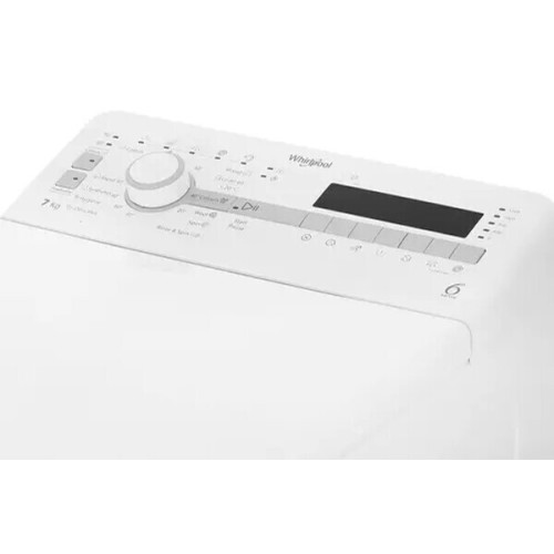 Стиральная машина Whirlpool – модель с вертикальной загрузкой до 7 кг белья. Она оснащена 13 программами для разных типов ткани и степени загрязненности. Панель управления с дисплеем, кнопками и поворотным механизмом обеспечивает простой выбор параметров. Система автобаланса перед отжимом равномерно распределяет вещи в барабане. С помощью таймера отложенного запуска можно программировать определенное время начала стирки. Благодаря функции парковки после завершения стирки барабан останавливается в положении, при котором створки оказываются сверху. Функция блокировки от детей повышает безопасность в эксплуатации машины.