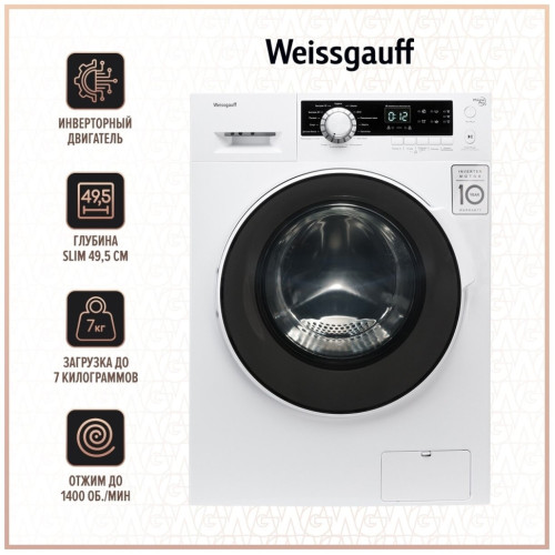 Стиральная машина Weissgauff, оснащённая инверторным двигателем, работающим по особой технологии BLDC, вмещает до 7 кг белья и обеспечивает скорость отжима до 1200 оборотов в минуту. Благодаря глубине всего 49.5 см машину можно установить даже в самой небольшой квартире. Загрузка до 7 кг позволяет машине справиться со всем объёмом одежды за один цикл. Скорость отжима до 1200 оборотов в минуту существенно сокращает время дальнейшей сушки белья. Режим «Быстрая стирка» на 15 или 45 минут отлично подходит для тех, у кого на счету каждая минута. Режим для детских вещей добавляет дополнительное полоскание, эффективно удаляя остатки моющего средства. Тихий режим станет идеальным решением для стирки в ночное время. После его активации все электронные звуковые сигналы будут отключены, поэтому программа будет выполняться без сигналов и дополнительных уведомлений. Функция «Мой цикл» позволит сохранить в памяти машины новый режим работы с бельём, созданный на основе индивидуально выбранных параметров. Опция Time Management даёт возможность выбрать уровень загрязнений, чтобы настроить продолжительность работы программы. Таймер отложенного старта позволяет отстрочить стирку до 24 часов. Функция дозагрузки белья после запуска программы обеспечивает дополнительное удобство. Инверторный двигатель, построенный по технологии Technologic Motor BLDC, использующей электромагнитное поле для вращения барабана без щёток, значительно снижает уровень шума, износа и энергопотребления. Благодаря классу энергоэффективности A+++, классу стирки А стиральная машина гарантирует минимальные затраты электроэнергии. Блокировка от детей защитит стиральную машину от нарушения работы программы из-за непреднамеренных нажатий кнопок или поворотов переключателя.