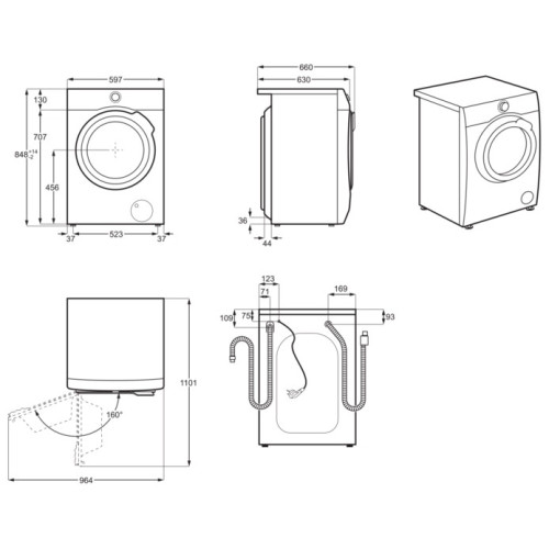 | Дополнительная информация | открывание люка на 180 градусов, подключение к горячей воде, подсветка барабана, расположение в колонну |