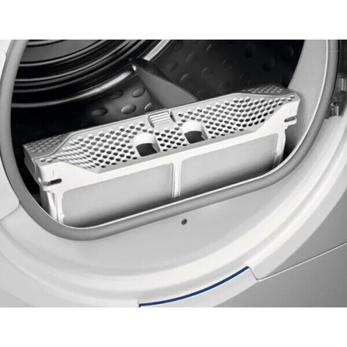 Сушильная машина Electrolux  — надежное и инновационное устройство, способное обеспечить эффективную, бережную и комфортную сушку вашего белья. С широким выбором программ, использованием передовых технологий и удобными функциями, эта модель предлагает непревзойденное качество и надежность, чтобы ваша одежда всегда была свежей, мягкой и безупречной. Максимальная загрузка белья составляет 8 кг, что позволяет сушить большое количество вещей или крупных за один цикл. Сушильная машина обладает широким выбором программ для различных типов вещей и тканей. Вы сможете подобрать оптимальную программу для сушки пуховых изделий, шерсти, шелка и других материалов. Режим «освежить одежду» позволяет избавить от запаха и разгладить вашу одежду без полноценной стирки и сушки. Высокую эффективность обеспечивает уникальная технология 3DSense. Датчики, расположенные внутри прибора, могут считывать количество влаги не только на поверхности ткани, но и внутри ее, гарантируя полное просушивание по всему объему. Прибор оснащен ярким и информативным дисплеем, который обеспечивает легкое управление и контроль над выбранными программами и режимами работы. Вы сможете легко выбрать необходимые настройки и следить за процессом сушки, а функция отсрочки старта позволяет вам запланировать сушку на удобное для вас время. Опция «Антисминание» обеспечивает вращение барабана после завершения цикла, что позволяет избежать появления заломов даже если вы не сразу сможете вынуть белье из машины. Инверторный двигатель отличается тихой работой и низким энергопотреблением, вот почему устройство имеет класс энергоэффективности A++.