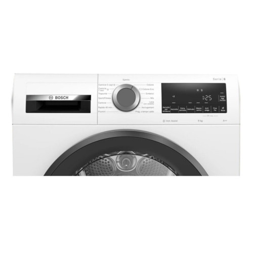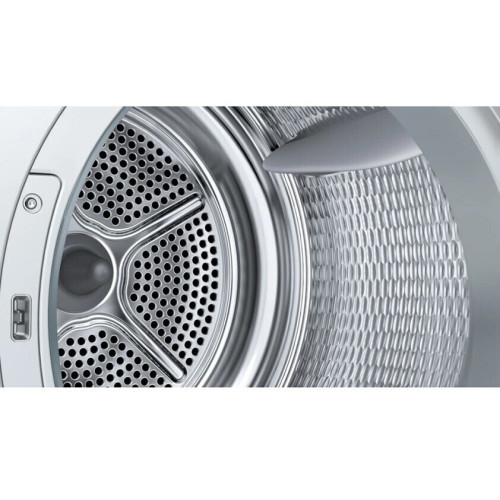Сушильная машина Bosch WQG241A0IT представлена в белом цвете, она оснащена системой Auto Dry, которая отслеживает состояние белья с помощью датчиков влажности. Специальный дизайн боковых стенок создан для антивибрационной устойчивости при работе. Имеется быстрая программа.